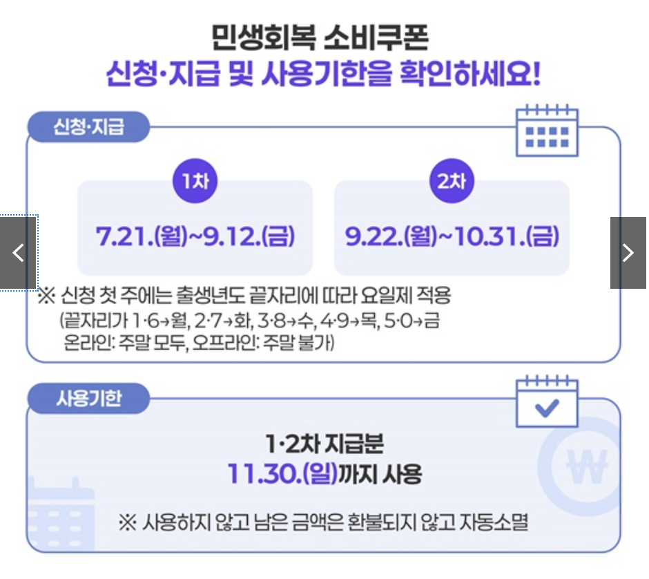 민생회복 소비쿠폰은 1차와 2차로 나누어 지급되며, 1차 지급은 7월 21일부터 시작됩니다. 정부는 소비쿠폰 사용이 단기간 내 내수 진작으로 이어질 수 있도록 사용 기한을 제한하고, 대기업이나 유흥업소가 아닌 지역 기반 소상공인 업종에서의 사용을 유도하겠다는 방침입니다.