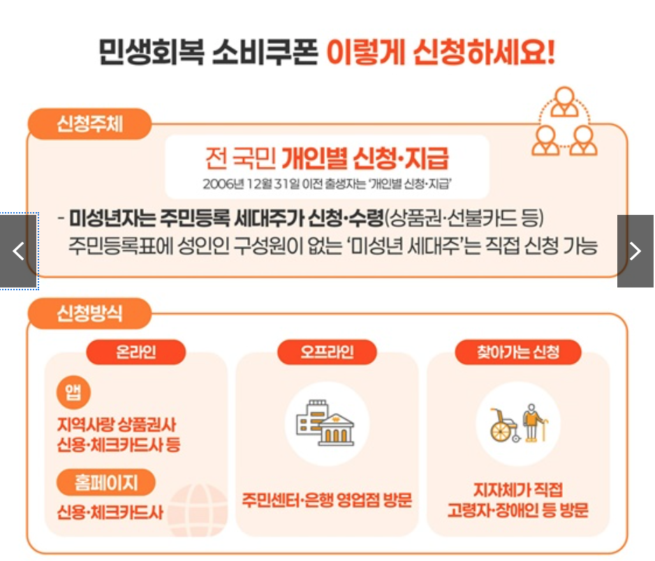 신청 초반에는 신청자 집중을 막기 위해 주민등록번호 끝자리에 따라 요일제를 적용합니다. 읍면동 주민센터를 통한 오프라인 신청도 가능하며, 일부 지역에서는 요일제 적용이 연장될 수 있습니다.